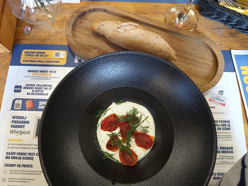 Menu B również opowiadało swoją historię. Puszysty krem z fety z pieczonymi pomidorkami koktajlowymi, oliwą extra vergine i świeżymi ziołami był prosty, ale wyrazisty - bazował na jakości składników i ich naturalnym smaku.